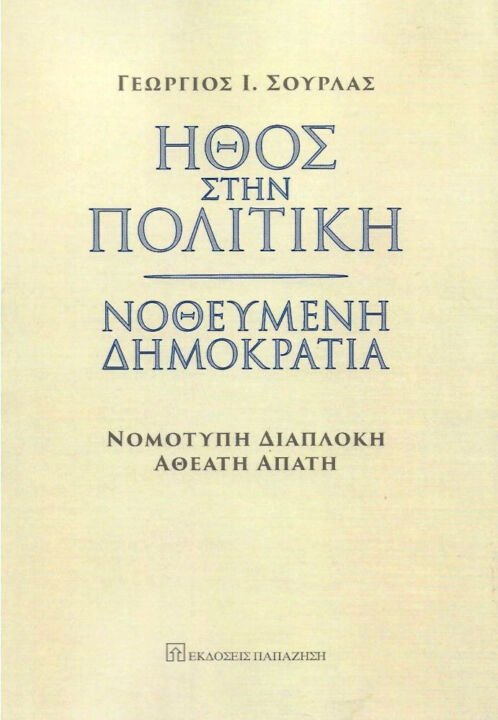 Το βιβλίο «ΗΘΟΣ ΣΤΗΝ ΠΟΛΙΤΙΚΗ – ΝΟΘΕΥΜΕΝΗ ΔΗΜΟΚΡΑΤΙΑ» του Ευπατρίδη Πολιτικού και Ιατρού Γεωργίου Ι. Σούρλα, πρέπει να διαβαστεί με ευλάβεια από Βουλευτές, Νομάρχες, Δημάρχους, Δημοτικούς Συμβούλους, κλπ.