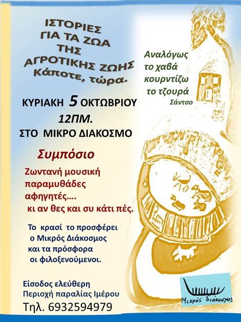 Κυριακή 5 Οκτώβρη 12 μεσημέρι, στον χώρο του Μικρού Διάκοσμου στην περιοχή παραλίας Ιμέρου, για μια εκδήλωση με ζωηράδα και νόημα,