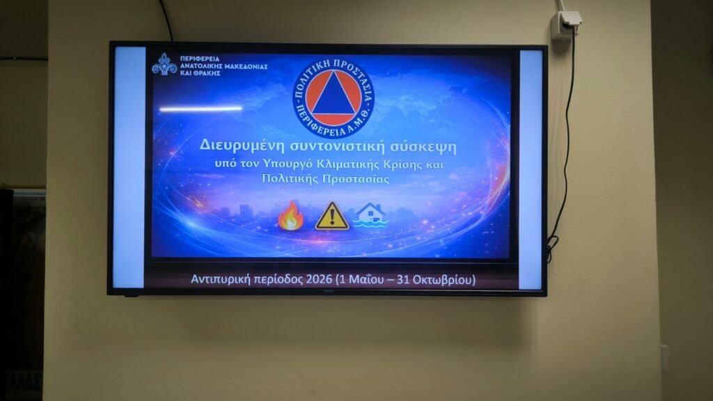 Διευρυμένη σύσκεψη του Περιφερειακού Συντονιστικού Οργάνου Πολιτικής Προστασίας (ΠΕΣΟΠΠ) για την «Προετοιμασία ενόψει Αντιπυρικής Περιόδου 2026 για την Περιφέρεια Ανατολικής Μακεδονίας & Θράκης»,πραγματοποιήθηκε την Τρίτη 17 Μαρτίου 2026, υπό τον Υπουργό Κλιματικής Κρίσης και Πολιτικής Προστασίας κ. Γιάννη Κεφαλογιάννη και τον Περιφερειάρχη κ. Χριστόδουλο Τοψίδη, στην αίθουσα συσκέψεων «Γεώργιος Παυλίδης» στην Π.Ε. Ροδόπης (πρώην Νομαρχία), στην Κομοτηνή.