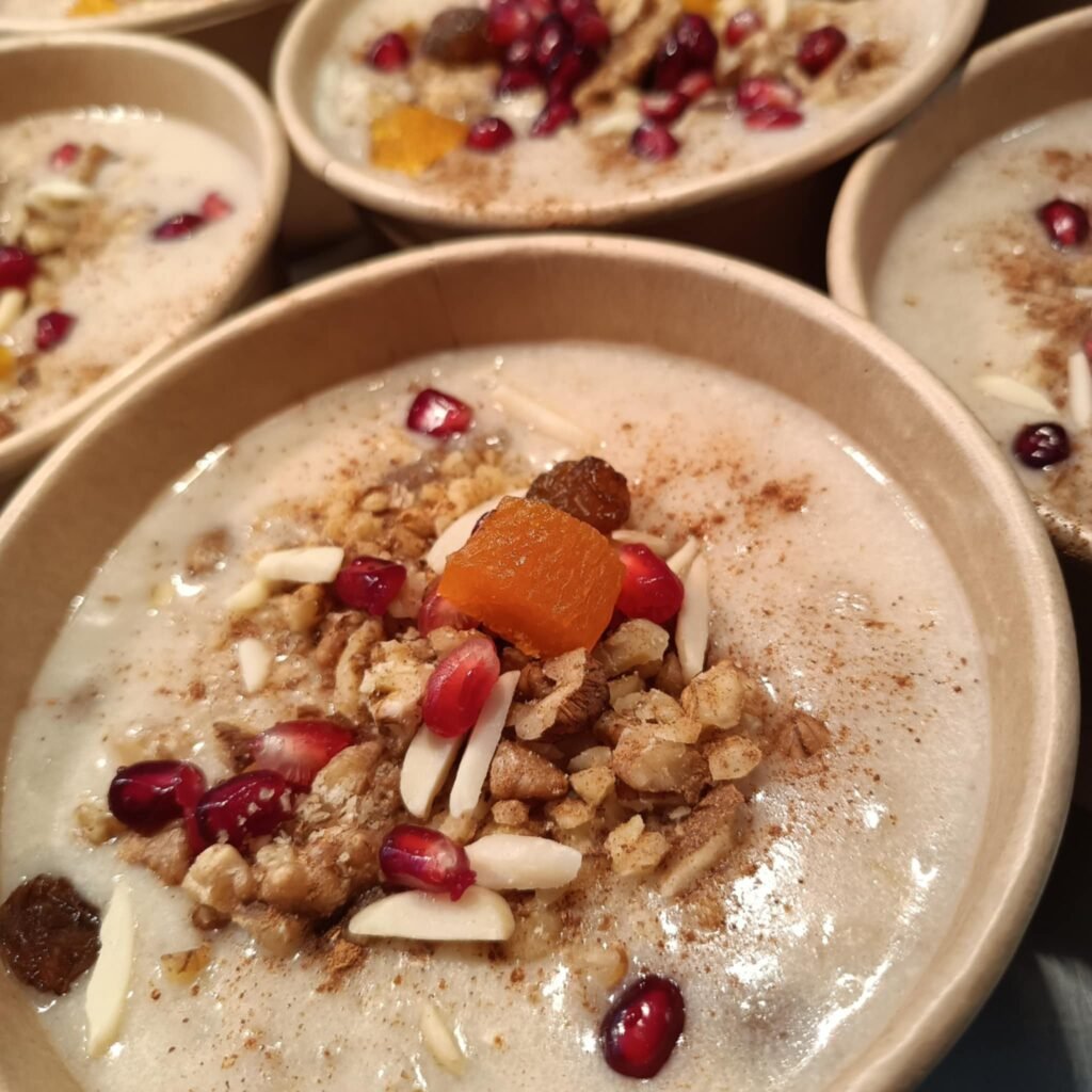 Τα βασικά συστατικά του είναι το ταχίνι, το σιτάρι, τα αποξηραμένα σύκα, το καρύδι, η ζάχαρη, οι σταφίδες, ενώ πλέον προστίθεται το ρόδι και τα αποξηραμένα βερύκοκα.
