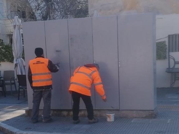 Τα συνεργεία του δήμου Αλεξανδρούπολης καθαρίζουν τις μουντζούρες