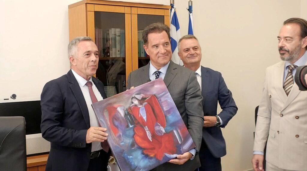 Μετά το πέρας της σύσκεψης, ο Υπουργός δέχτηκε έναν πίνακα ζωγραφικής ως δώρο για την επίσκεψη του στο νοσοκομείο από τον Διοικητή του νοσοκομείου, Ευάγγελο Ρούφο.