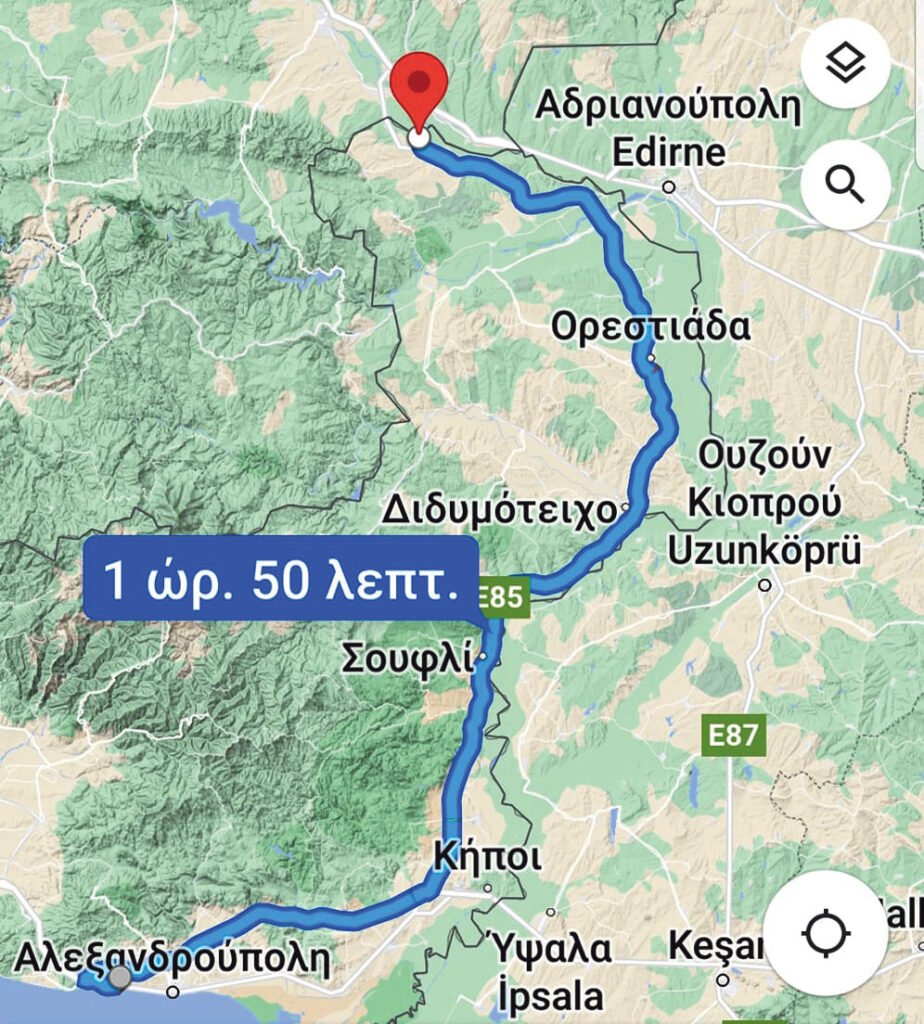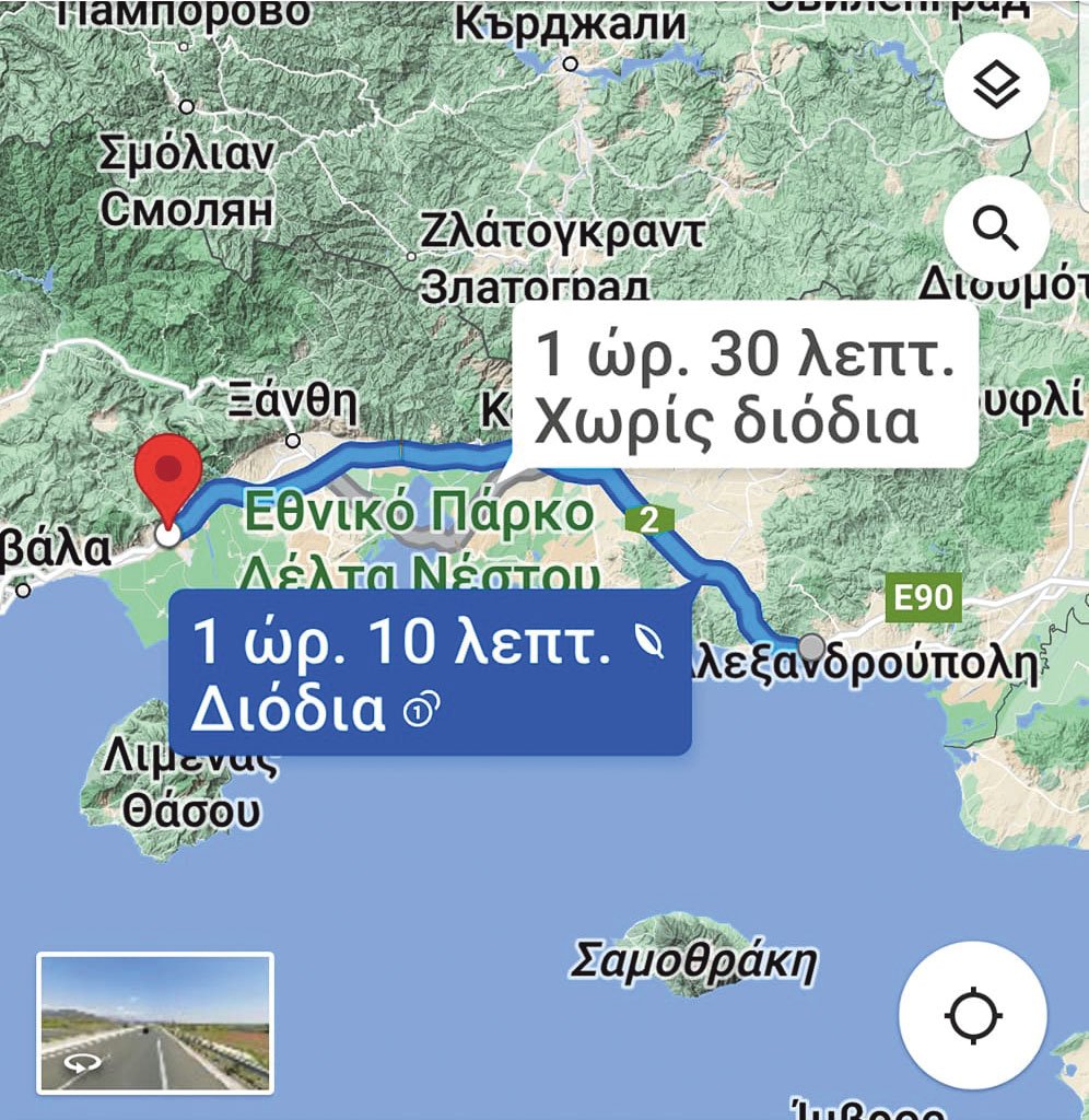 Σήμερα ταξίδευα προς Θεσσαλονίκη από Ορεστιάδα. Μόλις περάσεις τον Νέστο, άρα μόλις μπεις από την Θράκη στη Μακεδονία το GPS δείχνει ότι απέχεις 118 χλμ από την Αλεξανδρούπολη. Επομένως διασχίζεις πάνω στην Εγνατία Οδο, δυο ολόκληρες περιφερειακές ενότητες-Ξάνθης, Ροδόπης – και βγαίνεις ατην Αλεξανδρούπολη σε μία από τις τρεις ακίνδυνες εξόδους.
