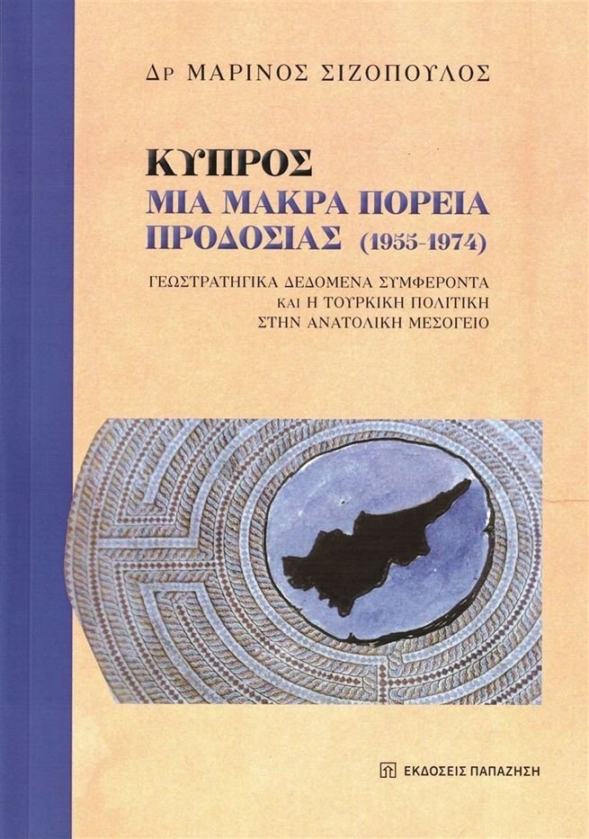 Κυκλοφόρησε από τις Εκδόσεις Παπαζήση το βιβλίο του Μαρίνου Σιζόπουλου «Κύπρος: Μια μακρά πορεία προδοσίας (1955-1974). Γεωστρατηγικά δεδομένα, συμφέροντα και η τουρκική πολιτική στην ανατολική μεσόγειο».