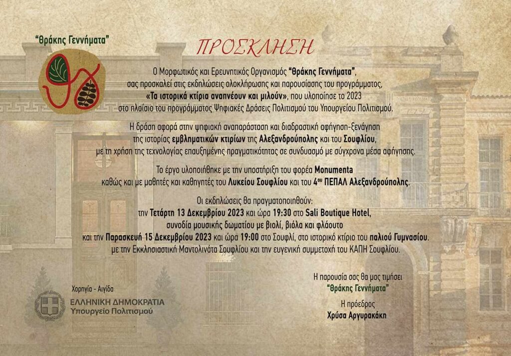 Εκδήλωση στην Αλεξ/πολη για τα Ιστορικά Κτίρια