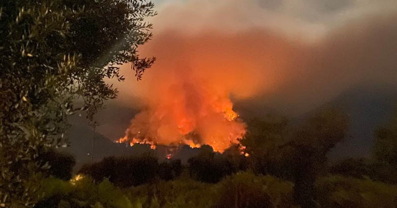 Η φωτιά είναι σε μεγάλο υψόμετρο και το νερό δεν ανεβαίνει με επίγεια μέσα, με μόνη ελπίδα τα εναέρια μέσα, αλλά και τη βροχή την οποία περιμένουν εδώ και μέρες να σώσει την κατάσταση.
