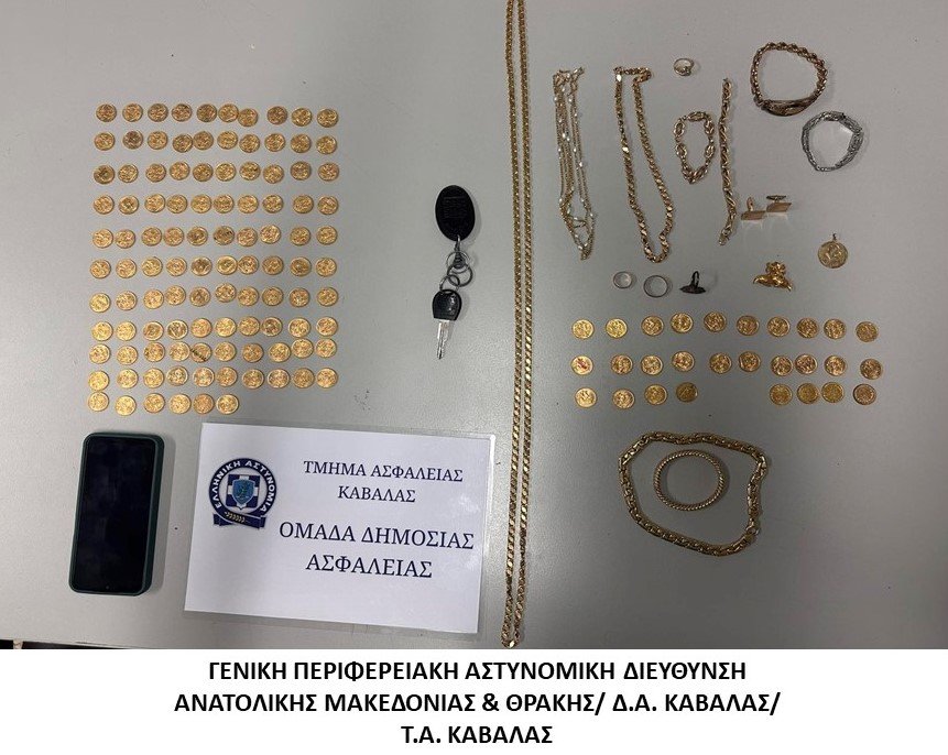 Επιπλέον, στο πλαίσιο των ερευνών εντοπίστηκε στην Καβάλα από τους ανωτέρω αστυνομικούς το όχημα που χρησιμοποιούσε η δράστιδα, εντός του οποίου βρέθηκαν, κατασχέθηκαν και αποδόθηκαν στους δικαιούχους τους οι 134 χρυσές λίρες και τα αφαιρεθέντα τιμαλφή.