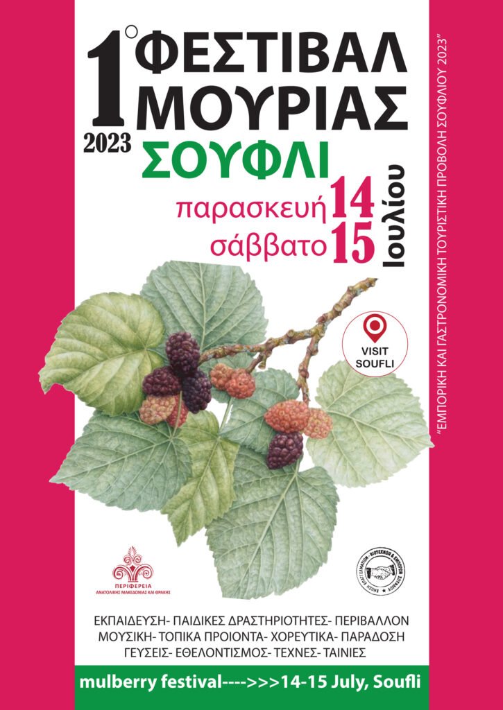 Βρισκόμαστε λίγες ημέρες πριν την διεξαγωγή του 1ου Φεστιβάλ Μουριάς, στο Σουφλί.