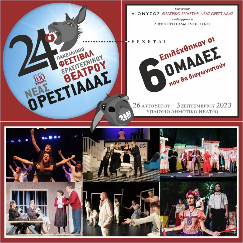 Μετά από μία δύσκολη και απαιτητική διαδικασία ολοκληρώθηκε η αξιολόγηση των αιτήσεων συμμετοχής, από την οποία προέκυψε η επιλογή των έργων για το διαγωνιστικό μέρος στο 24ο Πανελλήνιο Φεστιβάλ Ερασιτεχνικού Θεάτρου Νέας Ορεστιάδας, πουθα πραγματοποιηθεί από 26 Αυγούστου έως 3 Σεπτεμβρίου 2023.