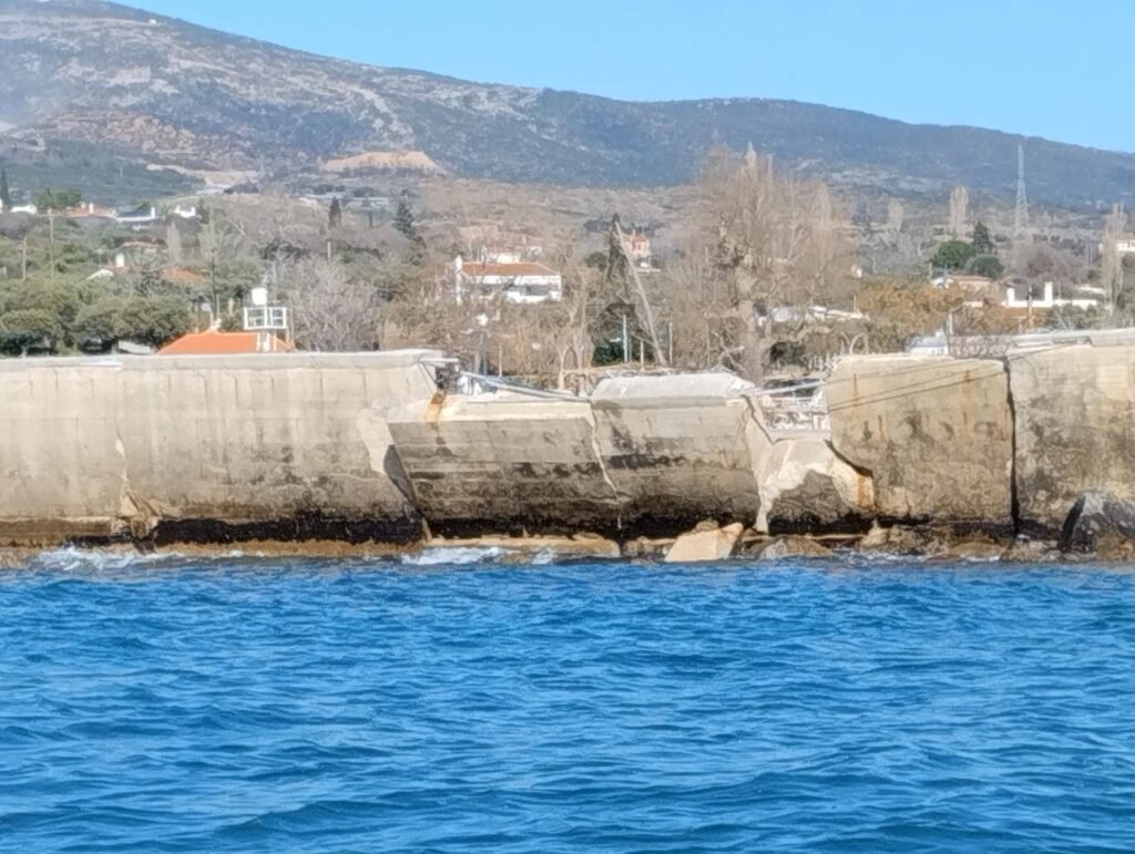 Στις φωτογραφίες που δημοσιοποιήθηκαν στο Facebook την Τρίτη 13 Ιανουαρίου από συμπολίτη, μέσω του Γιάννη Μαλκίδη, φαίνονται καθαρά μεγάλα τμήματα του προσήνεμου μώλου να έχουν ανοίξει, με εκτεταμένες ρωγμές και σημεία αποκόλλησης.