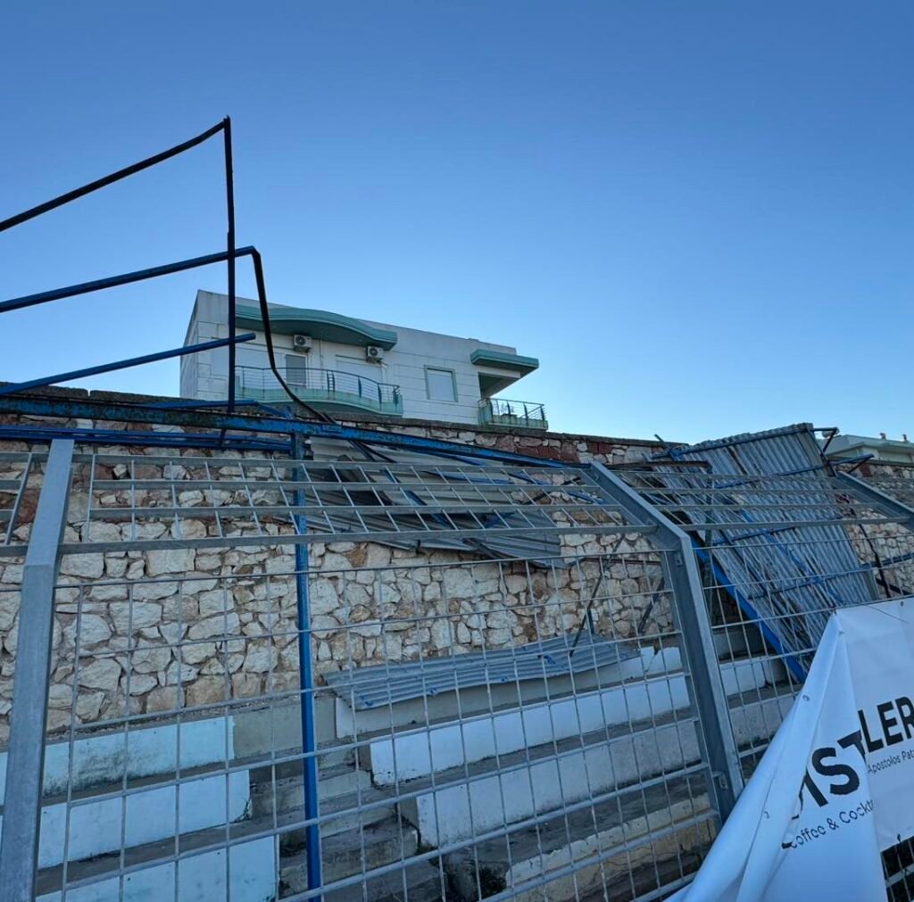 Για λόγους άμεσης προστασίας, προχωρήσαμε στην απομάκρυνση όλων των επικίνδυνων μεταλλικών κατασκευών και των αποκολλημένων υλικών, στον καθαρισμό του χώρου από θραύσματα και στην ασφάλιση/αποκλεισμό των σημείων όπου απαιτήθηκε περιορισμός πρόσβασης, έως ότου ολοκληρωθεί η τεχνική αποτίμηση και η οριστική αποκατάσταση των υποδομών.