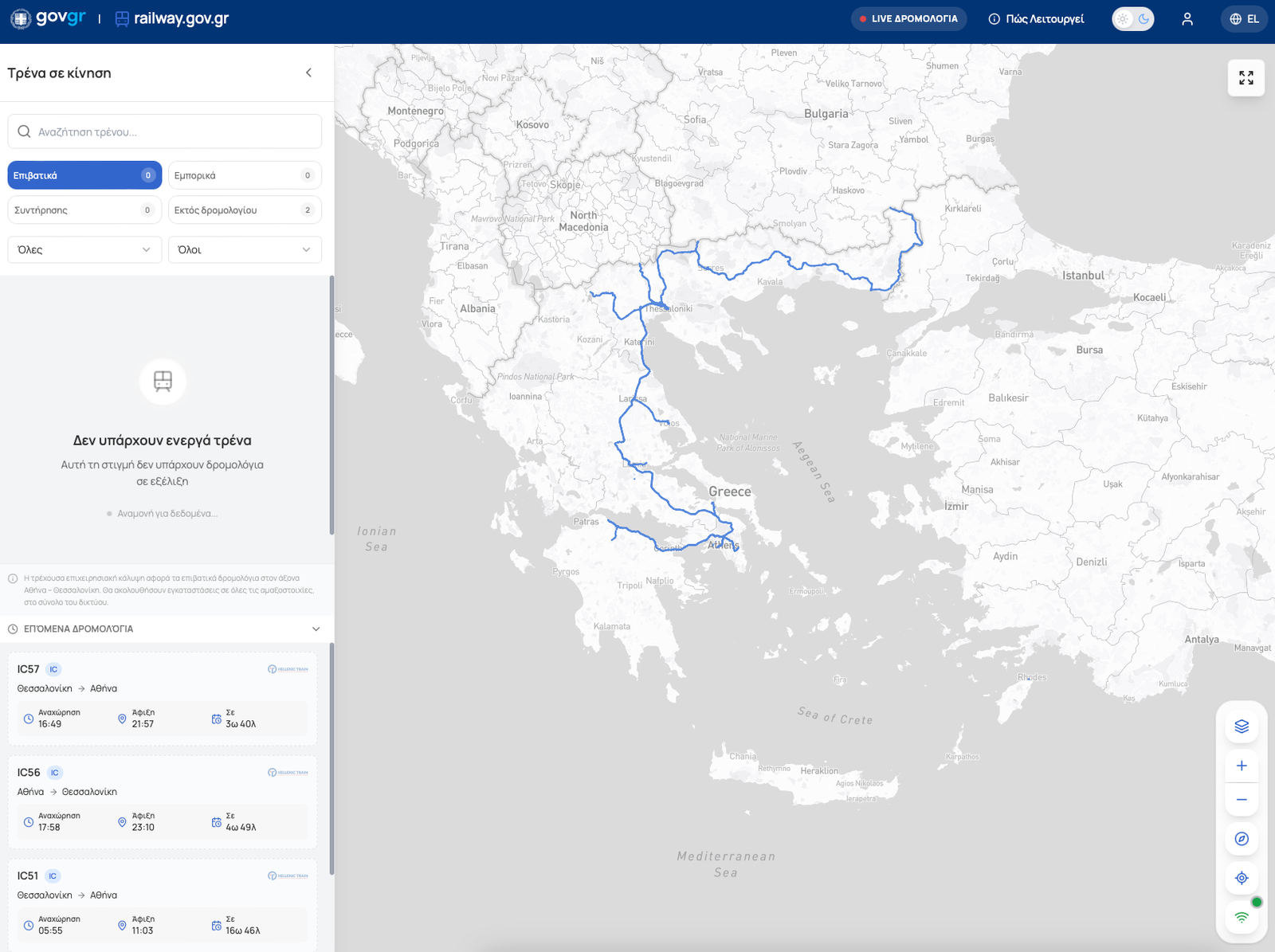 ● τη ζωντανή θέση των τρένων στον χάρτη,