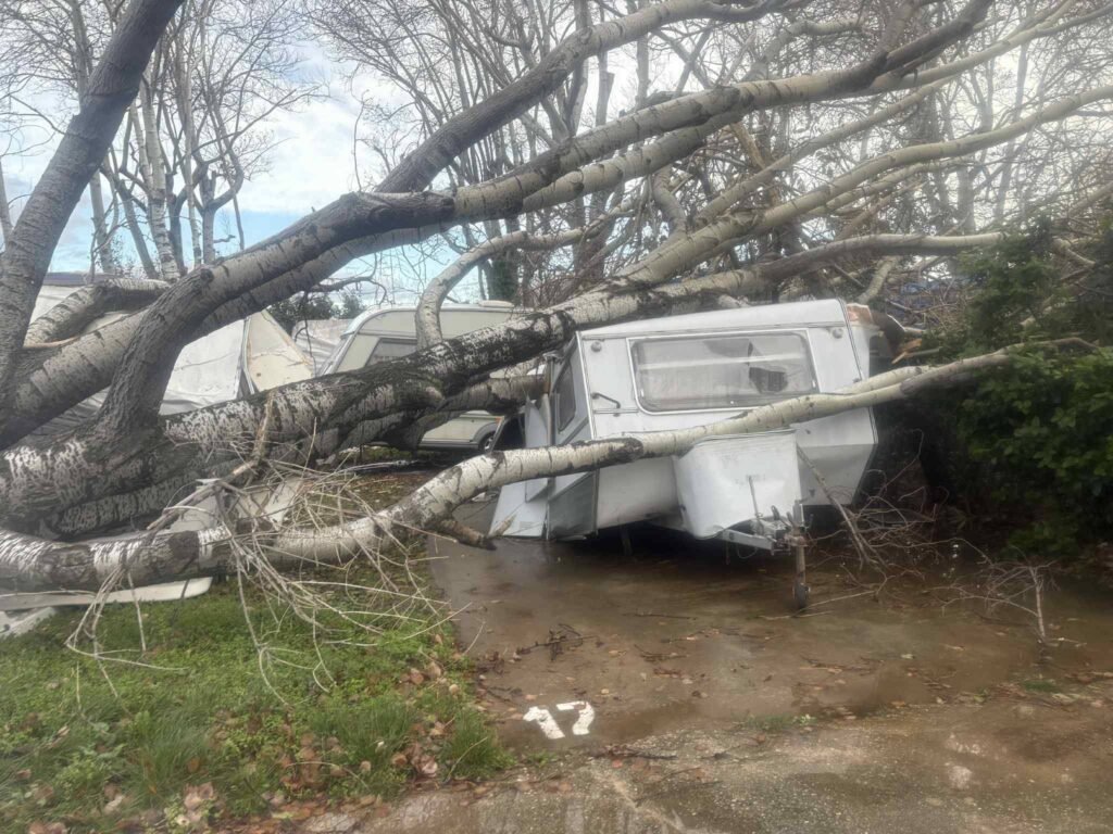 Στο δημοτικό κάμπινγκ η καταστροφή είναι ιδιαίτερα μεγάλη, καθώς πάνω από 15 μεγάλα παλιά δέντρα έχουν πέσει, ενώ έχουν καταγραφεί 14 ολοκληρωτικές καταστροφές οχημάτων (τροχόσπιτα).