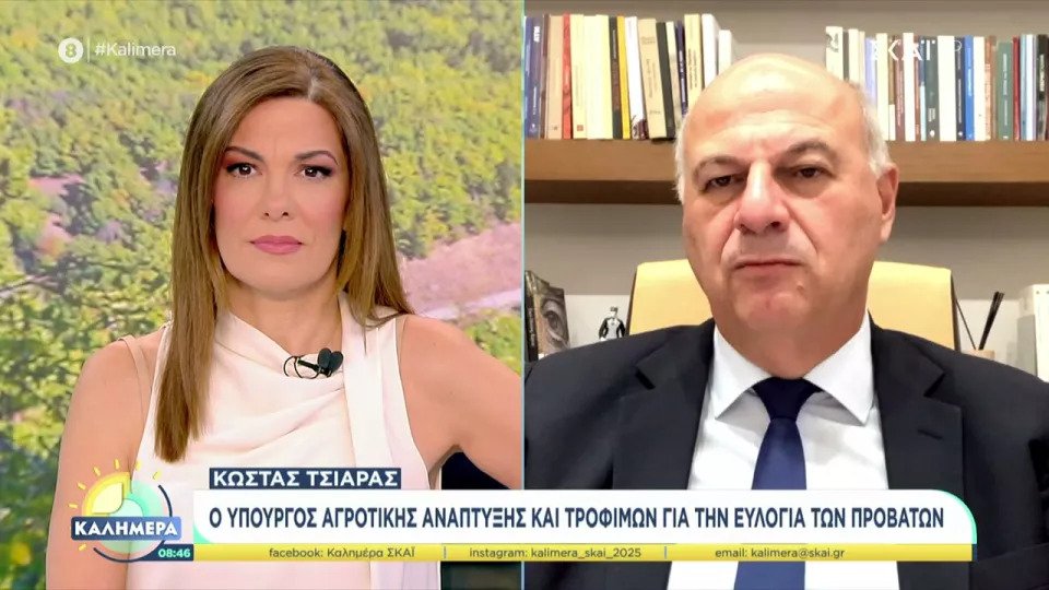 Στο μεταξύ, ο Υπουργός Αγροτικής Ανάπτυξης και ΤροφίμωνΚώστας Τσιάρας, φιλοξενήθηκε στην εκπομπή «Καλημέρα» του ΣΚΑΪ, καθώς η ελληνική κτηνοτροφία βρίσκεται σε μία πολύ πιεστική κατάσταση, μετά την εξάπλωση της ευλογιάς σε όλη σχεδόν την επικράτεια.