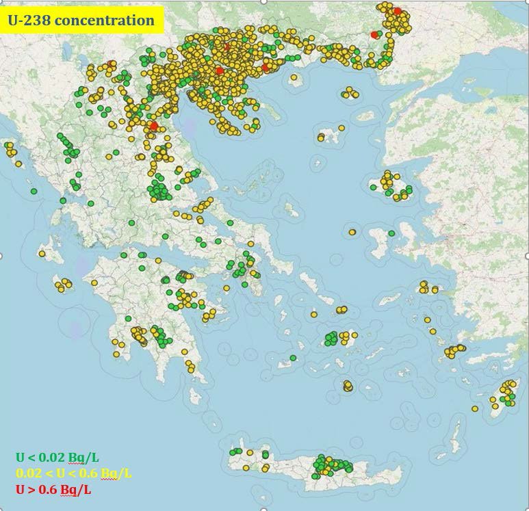 Οι συγκεντρώσεις ουρανίου είναι γενικά αυξημένες στα υπόγεια νερά των γεωτρήσεων λόγω των γρανιτικών και ιζηματογενών πετρωμάτων. Τα πλουσιότερα σε ουράνιο νερά εντοπίζονται κυρίως σε Κεντρική και Ανατολική Μακεδονία και στη Θράκη, και λιγότερο στη Δυτική Μακεδονία και τη Θεσσαλία. Σε όλες τις περιπτώσεις, εκτός από τους πέντε προαναφερθέντες οικισμούς, τα δείγματα του νερού που εξετάστηκαν ήταν κατάλληλα.