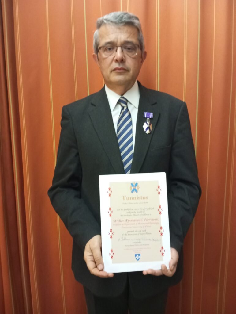 Την Κυριακή της Σταυροπροσκυνήσεως, στις 7 Απριλίου 2024, ο Σεβασμιώτατος Μητροπολίτης Ταλλίνης και Πάσης Εσθονίας κ. Στέφανος, προκαθήμενος της Ορθόδοξης Εκκλησίας της Εσθονίας (Festi Apostlik – Õigeusu Kirik) τίμησε με το παράσημο του αγίου Πλάτωνα, την ανώτατη τιμητική διάκριση της Ορθόδοξης Εκκλησίας της Εσθονίας, τον Καθηγητή του Δημοκριτείου Πανεπιστημίου Θράκης και Κοσμήτορα της Σχολής Κλασικών και Ανθρωπιστικών Σπουδών κ. Μανόλη Γερ. Βαρβούνη, σε ένδειξη αναγνώρισης και τιμής και το ερευνητικό, επιστημονικό και εν γένει πνευματικό έργο του, και μάλιστα στους τομείς του ελληνορθόδοξου πολιτισμού και της παιδείας του Γένους.