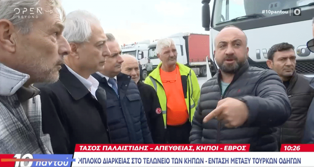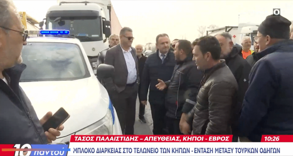 Στο Τελωνείο Κήπων Έβρου, τα νεύρα των Τούρκων οδηγών σε νταλίκες είναι στην τσίτα, καθώς εδώ και μέρες παραμένουν ακινητοποιημένοι σε ουρές 10 χιλιομέτρων, ενίοτε χωρίς νερό ή φαγητό (με τους αγρότες βεβαίως να προσφέρουν ό,τι μπορούν), αλλά και χωρίς να υπάρχει κάποια ενημέρωση για το τι μέλλει γενέσθαι.