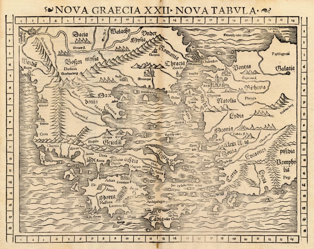 Antique map of Greece – Aegean Sea – Turkey by Munster S, 1552