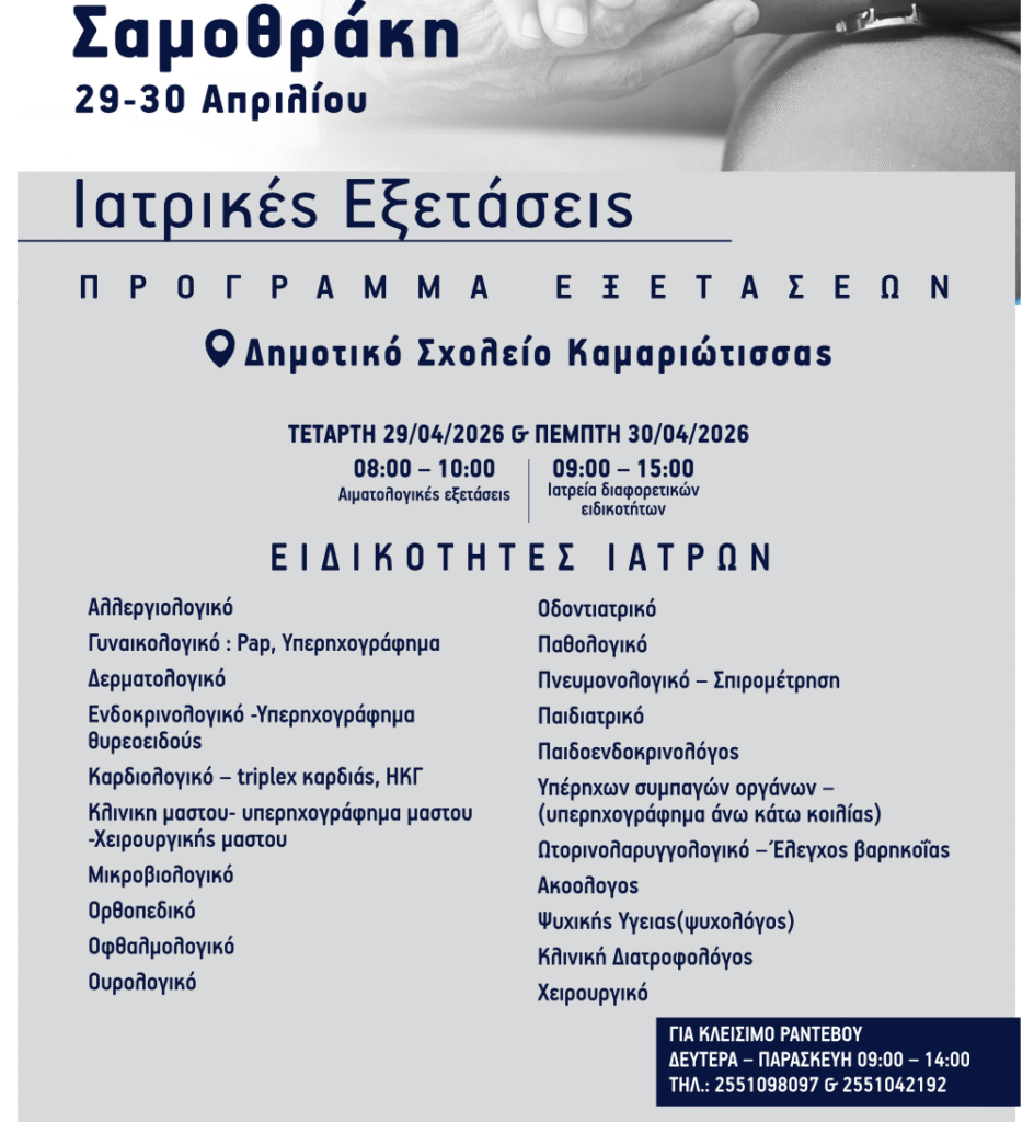 Ιατρικές εξετάσεις στους κατοίκους της Σαμοθράκης