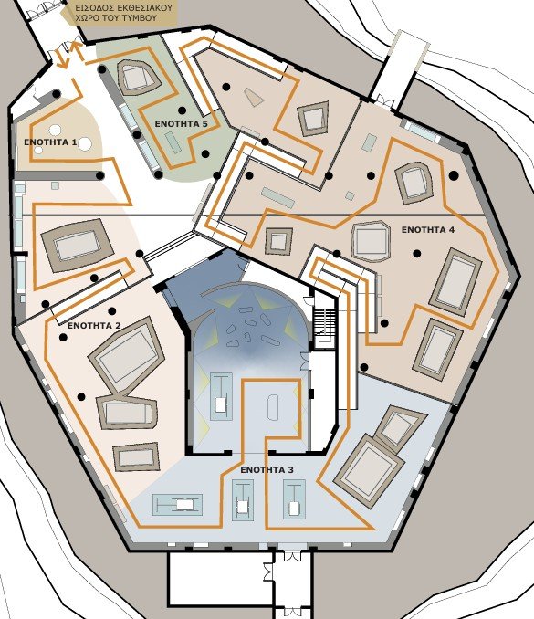 Οι μουσειογραφικές αρχές της έκθεσης άπτονται της διαμόρφωσης μιας ευκρινούς και απλής αφηγηματικής πορείας, αλλά και της εξασφάλισης των κατάλληλων συνθηκών για τη διατήρηση, την προστασία και την ανάδειξη των αρχαιοτήτων. Ο κεντρικός πυρήνας της έκθεσης διαμορφώνεται σε δύο επίπεδα, ισόγειο και όροφο. Στο ισόγειο, διαμορφώνεται χώρος πολλαπλών χρήσεων για διαλέξεις, εκδηλώσεις και προβολές. Το δυτικό τμήμα του διαμορφώνεται σε εκθεσιακό χώρο και το ανατολικό ως αποθήκη. Στον όροφο εγκαθίστανται οι ηλεκτρομηχανολογικές εγκαταστάσεις του κτηρίου. Το έργο περιλαμβάνει τη διαμόρφωση του περιβάλλοντος χώρου, με πρόσβαση για άτομα με κινητικά προβλήματα, χώρους στάθμευσης και βοηθητικές εγκαταστάσεις, ώστε να μπορεί να υποδεχθεί μεγάλο αριθμό επισκεπτών και να λειτουργήσει ως σημαντικό κέντρο πολιτισμού και έρευνας.