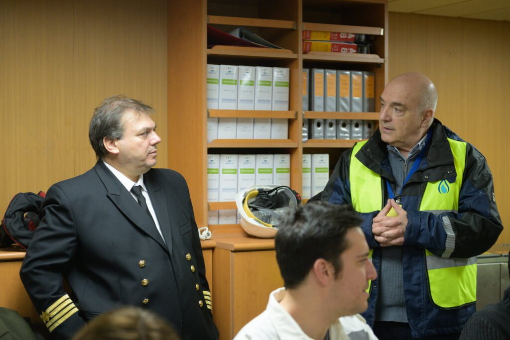 Ο Κωστής Σιφναίος, μαζί με τον καπετάνιο του πλοίου, έδωσαν όλες τις απαραίτητες πληροφορίες σχετικά με την λειτουργία του FSRU.