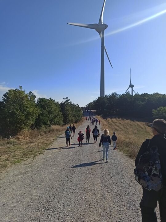 Πιο συγκεκριμένα, οι συμμετέχοντες αφού διένυσαν μια διαδρομή 1,5 χιλιομέτρου έφτασαν σε σημείο θέασης στο οποίο είχε τοποθετηθεί μια από τις πολλές ανεμογεννήτριες της περιοχής . Εκεί με τους τεράστιους έλικες να στριφογυρίζουν πάνω από τα κεφάλια των πεζοπόρων, τα παιδιά είχαν την ευκαιρία να γνωρίσουν από πρώτο χέρι τη λειτουργία αλλά και την χρησιμότητα αυτού του είδους εναλλακτικής παραγωγής ενέργειας καθώς καλεσμένος στην δράση μας ήταν ο Περιβαλλοντολόγος Αλέξανδρος Κατσικογιάννης.
