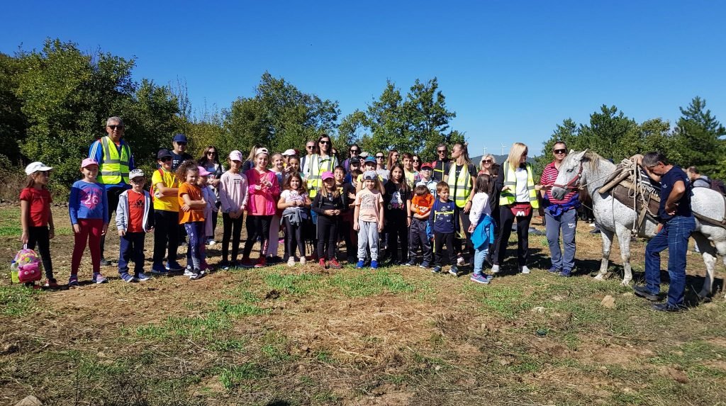 Παιδάκια ηλικίας από 5 ετών και πάνω μαζί με τους γονείς τους πεζοπόρησαν διανύοντας περίπου 4,5 χιλιόμετρα από το σημείο εκκίνησης (πλάτωμα μεταξύ Αισύμης και Λεπτοκαρυάς) ως τις ανεμογεννήτριες που ξεπρόβαλλαν μπροστά τους σας γίγαντες ανάμεσα από τις φυλλωσιές και τους λόφους της περιοχής, ενώ στην συνέχεια κατευθύνθηκαν στον χώρο όπου βοσκούσαν τα άλογα εργασίας που εξυπηρετούν τον δασικό συνεταιρισμό της Αισύμης.