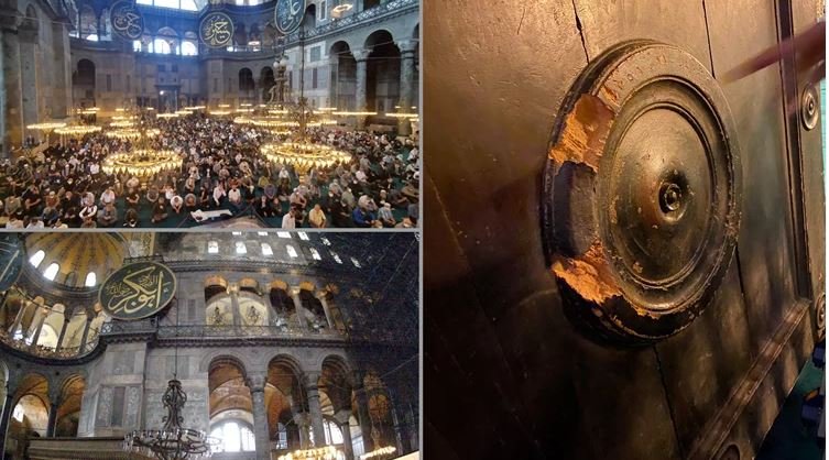 Οι Τούρκοι κατέστρεψαν την αυτοκρατορική πύλη στην Αγια-Σοφιά και η περιβόητη διεθνής κοινότητα κωφεύει. Το ίδιο κάνει και η ελληνική κυβέρνηση, η οποία περιορίστηκε σε μια χλιαρή ανακοίνωση του υπουργείου Εξωτερικών. Οι φωτογραφικές αποδείξεις της βεβήλωσης δεν φαίνεται να συγκινούν εκείνους που θα έπρεπε να έχουν κινήσει γη και ουρανό για να τιμωρηθούν οι Τούρκοι για τις αθλιότητες που διαπράττονται στον πάνσεπτο ιερό ναό.