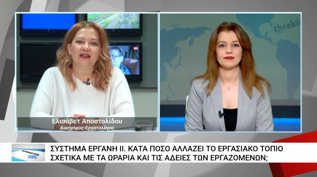 Η δικηγόρος-εργατολόγος στην Αλεξανδρούπολη, Ελισάβετ Αποστολίδου, φιλοξενήθηκε στα Γεγονότα του ΘΡΑΚΗ ΝΕΤ, όπου έδωσε περισσότερες πληροφορίες στην Μαρίνα Κονδύλη και τους τηλεθεατές αναφορικά με το «Εργάνη ΙΙ».