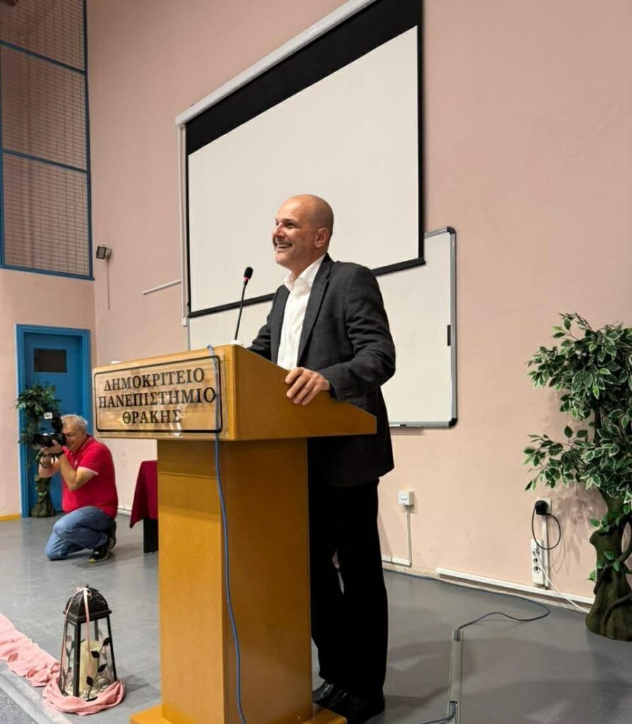 Υπογράμμισε τον κεντρικό ρόλο του Τμήματος Αγροτικής Ανάπτυξης του ΔΠΘ στην εξέλιξη του αγροδιατροφικού κλάδου και ευχαρίστησε όλες και όλους όσες/όσους συμβάλλουν καθημερινά στο εκπαιδευτικό και το ερευνητικό έργο που παράγεται.