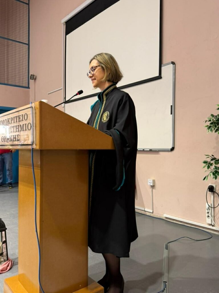 Στην εκδήλωση παρευρέθηκε και η Αντιδήμαρχος Ορεστιάδας, Ευαγγελία Μπραϊκούδη, η οποία επίσης συνεχάρη τις/τους νέες/νέους πτυχιούχους για τη μεγάλη επιτυχία τους και ευχήθηκε να αξιοποιήσουν τις γνώσεις και τις δεξιότητές τους με τρόπο δημιουργικό και ωφέλιμο, τόσο για τη δική τους πορεία όσο και για την ευρύτερη κοινωνία.