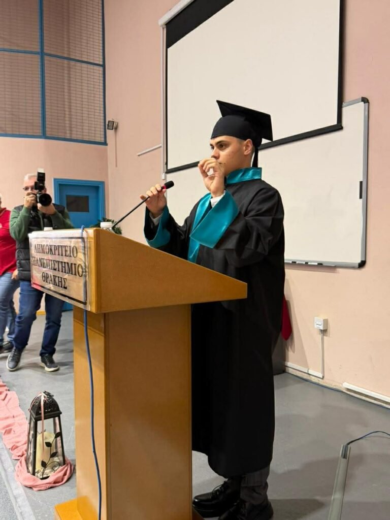 Στη συνέχεια, ο Πρόεδρος του ΓΕΩΤΕΕ Θράκης κ. Τριαντάφυλλος Παπαδάκης συνεχάρη τις/τους αποφοίτους που ολοκλήρωσαν με επιμονή και αφοσίωση μία απαιτητική διαδρομή, και τόνισε ότι το Γεωτεχνικό Επιμελητήριο θα στέκεται πάντα αρωγός στα επόμενα βήματά τους για να στηρίξει το έργο τους στην αειφόρο ανάπτυξη, την προστασία των φυσικών πόρων και την κοινωνική πρόοδο.