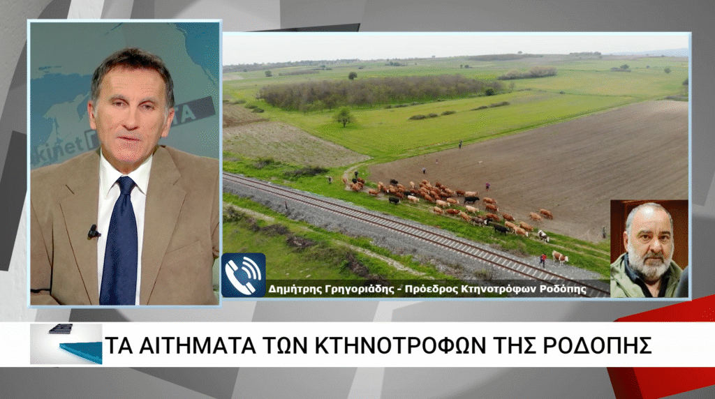 Στο κεντρικό δελτίο ειδήσεων του ΘΡΑΚΗ ΝΕΤ και τον Σταύρο Παπαδόπουλο μίλησε ο πρόεδρος Κτηνοτρόφων Ροδόπης, Δημήτρης Γρηγοριάδης, αναφορικά με το φλέγον ερώτημα για το μέλλον των αγροτικών κινητοποιήσεων εν όψει Χριστουγέννων και τις καταγγελίες κτηνοτρόφων στην Εισαγγελία Ροδόπης σχετικά με βοσκοτόπια παράνομα δοθέντα σε ιδιώτες.