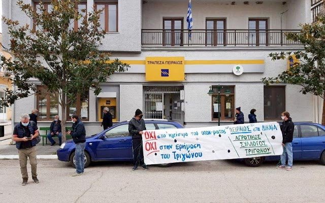 Επιβλήθηκε στον Πρόεδρο του Αγροτικού Συλλόγου Τριγώνου, κατά την συγκέντρωση διαμαρτυρίας για το κλείσιμο του Υποκαταστήματος της Τραπέζης Πειραιώς