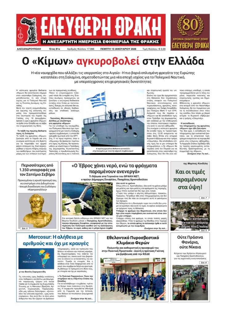 Πέμπτη 15 Ιανουαρίου 2026