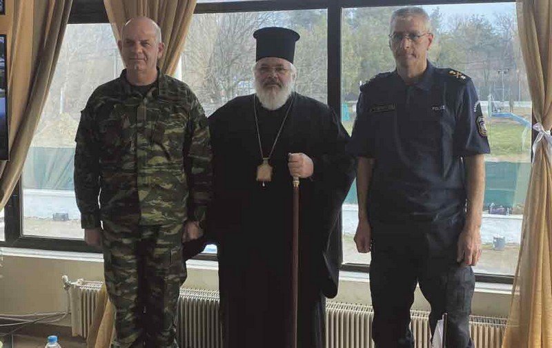 Με ιδιαίτερη ευγένεια, σεβασμό και συγκίνηση υποδέχθηκαν τον Σεβασμιώτατο εκεί ο Γενικός Περιφερειακός Αστυνομικός Διευθυντής Ανατ. Μακεδονίας – Θράκης Ταξίαρχος Πασχάλης Συριτούδης και ο Διοικητής της 3ης Ταξιαρχίας Ταξίαρχος Γρηγόριος Μπουτλιάκης. Διαπιστώνοντας το ακμαίο φρόνημα των ενστόλων ο Σεβασμιώτατος μετέφερε σε όλους τους παρισταμένους τις ευχές της Εκκλησίας αλλά και την στήριξη του ακριτικού λαού μας, ο οποίος με καύχηση παρακολουθεί την γενναιότητά τους και τις επιτυχίες τους.