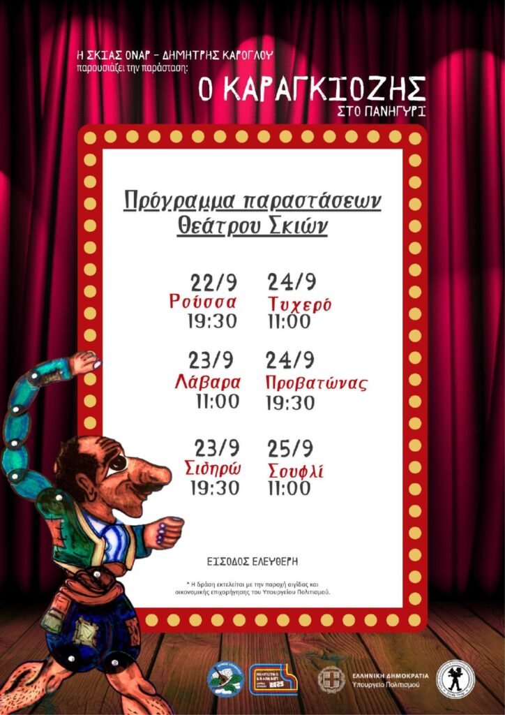 19:30 | Θέατρο Σκιών «Ο Καραγκιόζης στο πανηγύρι» | Προβατώνας