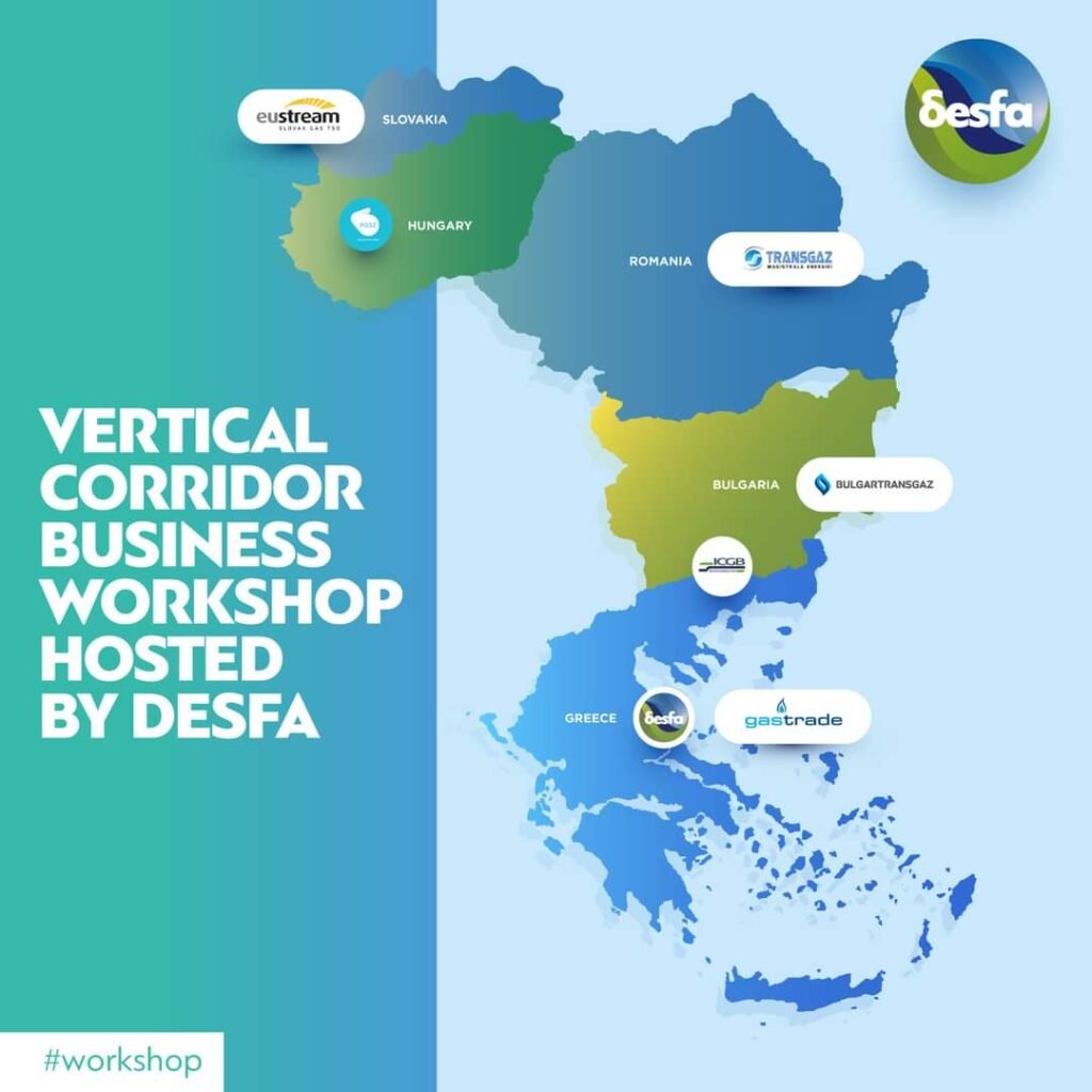 «Συνάντηση εργασίας για τον Κάθετο Διάδρομο Φυσικού Αερίου διοργάνωσε ο ΔΕΣΦΑ στη Θεσσαλονίκη, με τη συμμετοχή των εταιρειών Gastrade, ICGB, Bulgartransgaz, Transgaz, FGSZ και EUSTREAM (ως παρατηρητή), οι οποίες διαχειρίζονται τα συστήματα μεταφοράς φυσικού αερίου και LNG σε Ελλάδα, Βουλγαρία, Ρουμανία, Ουγγαρία και Σλοβακία, αντίστοιχα.