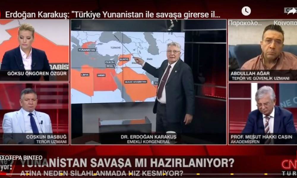 Η τελευταία πρόκληση, η οποία μάλιστα ξεπερνάει κάθε όριο, έγινε από την τηλεοπτική συχνότητα του CNNturk, με τούρκο αναλυτή να εξηγεί ότι ο «στόχος των χερσαίων δυνάμεων της Τουρκίας είναι η Θεσσαλονίκη».