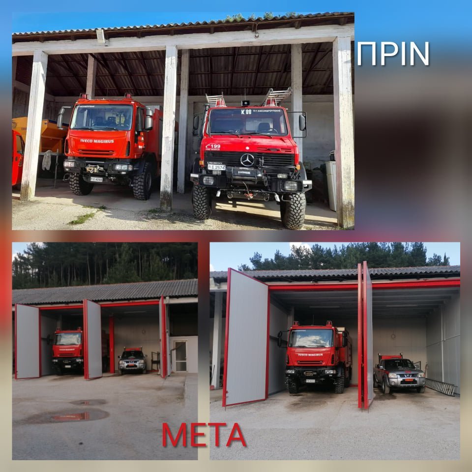 Η Δημοτική Αρχή, θέλοντας να βάλει ένα τέλος σ’ αυτήν την κατάσταση, προχώρησε στη ριζική ανακαίνιση του χώρου παραμονής των πυροσβεστών και την κατασκευή κλειστού θερμαινόμενου χώρου στάθμευσης οχημάτων.