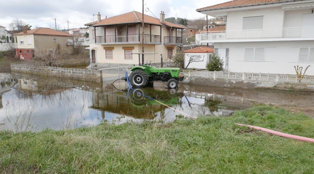 Έχει περίπου 4 με 5 μέτρα νερό. Αυτό το νερό, άμα πάτε προς το χωριό μέσα, είναι πάνω από τα κεφάλια μας, κρατιέται στον δρόμο. Ανά πάσα στιγμή οι πιέσεις είναι υψηλές και μπορεί να μπει μες στο χωριό. Αν μπει μες στο χωριό, το μισό χωριό είναι πλημμυρισμένο. Δεν έχουν γίνει ακόμα ζημιές σε οικισμούς μέσα στον οικισμό, αλλά αυτήν τη στιγμή τα προβλήματα που ξέρουμε ότι θα δούμε μετά, όταν φύγουν οι πλημμύρες, είναι ότι στον κάμπο έχουν καταστραφεί αρδευτικά δίκτυα, γεωτρήσεις, καναλέτα, κανάλια, δρόμοι, αποστραγγιστικά. Χωράφια που είναι δίπλα στα αναχώματα και σπάσανε, έχουν πάρει άμμο, έχουν διαβρωθεί. Έχει αλλάξει η σύσταση του εδάφους σε όλα τα χωράφια, χάλασε η γονιμότητά τους σίγουρα. Υπήρχαν καλλιέργειες όπως η σιτηρά, σπαράγγια, μηδική, κάποια δέντρα. Αυτά έχουν καταστραφεί. Μιλάμε για μεγάλη καταστροφή.