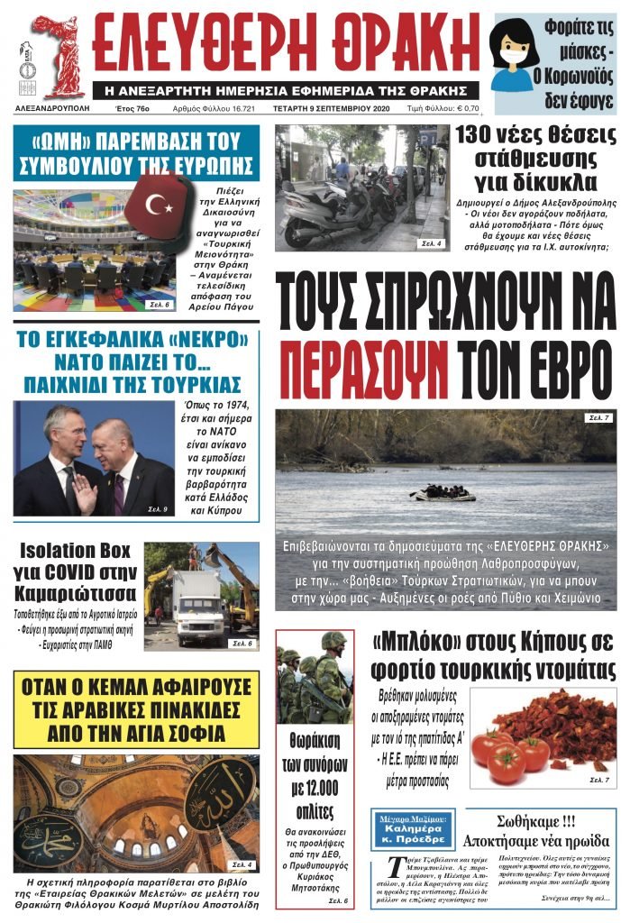 Τετάρτη 09 Σεπτεμβρίου 2020