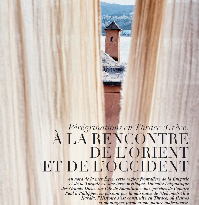 Πρόκειται για ρεπορτάζ της συντάκτριας του περιοδικού «Le Figaro Magazine» Sarah Chevalley, που θεωρείται μία από τις κορυφαίες ταξιδιωτικές δημοσιογράφους της Γαλλίας. Η κα Sarah Chevalley και ο φωτογράφος κος Eric Martin επισκέφθηκαν μεταξύ 24 Ιουνίου και 03 Ιουλίου 2024 την Ελλάδα και συγκεκριμένα την Ανατολική Μακεδονία και Θράκη, με σκοπό τη συλλογή του απαραίτητου υλικού από περιοχή της Καβάλας, του αρχαιολογικού χώρου των Φιλίππων, τη Θάσο, τη Σαμοθράκη, την Ξάνθη και την Αλεξανδρούπολη.
