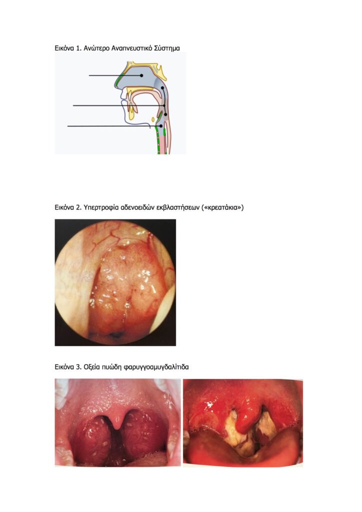 Αποτελούν τις πιο συχνές λοιμώξεις του ανθρώπινου οργανισμού. Εν συντομία, με τον όρο λοιμώξεις του ανώτερου αναπνευστικού συστήματος αναφερόμαστε σε μία πληθώρα φλεγμονών (ιογενούς ή βακτηριακής αιτιολογίας) που προσβάλουν τον στοματοφάρυγγα, τον ρινοφάρυγγα, την μύτη, τις παραρρίνες κοιλότητες, και τον λάρυγγα (Εικόνα 1).