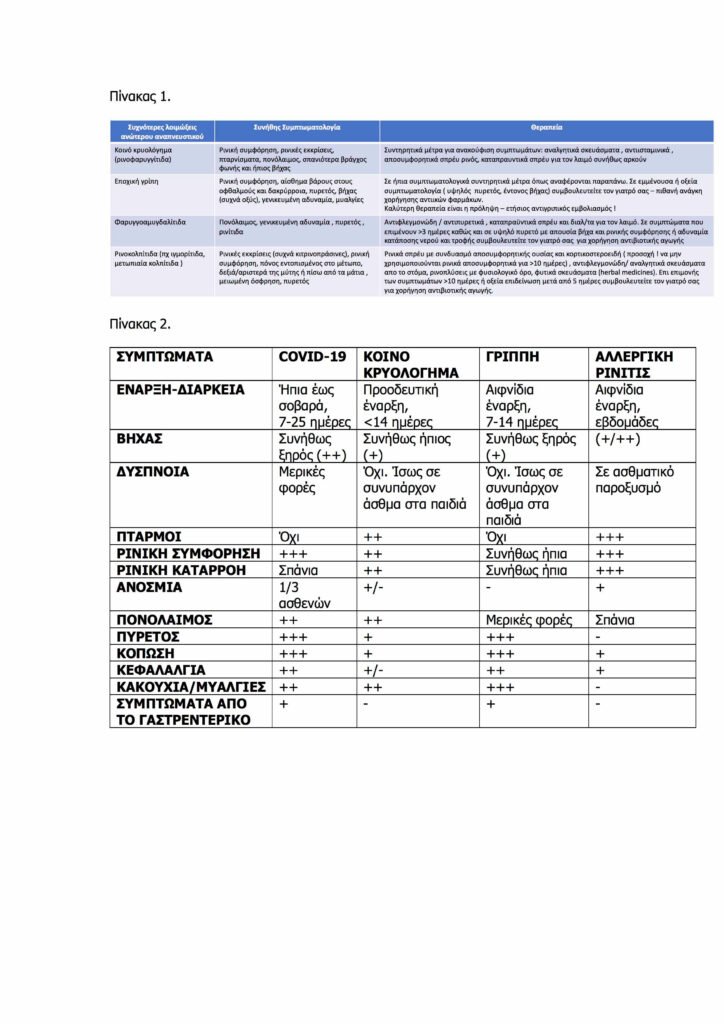 Οι κλινικές εκδηλώσεις των λοιμώξεων αυτών παρουσιάζονται στους Πίνακες 1,2.