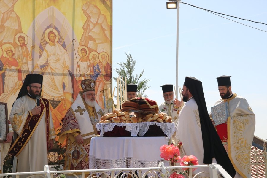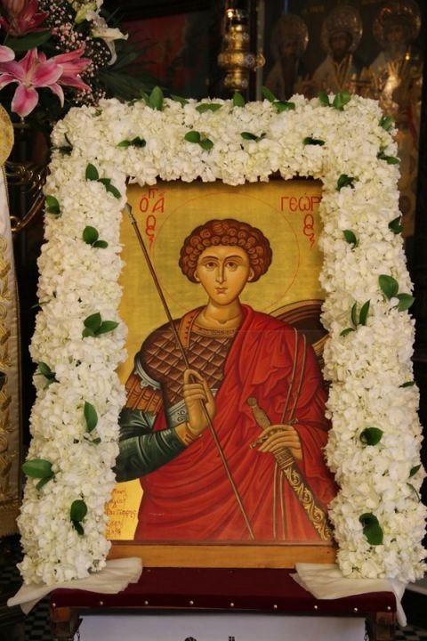Ο Σεβασμιώτατος προσεγγίζοντας τη θαυμάσια βιοτή του αγίου Γεωργίου ανέπτυξε τις σκέψεις του επί του υμνογραφικού «Ἡ τοῦ Χριστοῦ Ἐκκλησία τοῖς ἄνθεσιν ὡραϊζομένη, βοᾷ σοι, τροπαιοφόρε μεγαλομάρτυς Γεώργιε μή διαλείπῃς πρεσβεύειν ὑπέρ ἡμῶν πρός Κύριον» και τόνισε ότι η προσδοκία της Αναστάσεως και της αιώνιας ζωής ενέπνευσαν τον Μεγαλομάρτυρα άγιο, ο οποίος με γενναίο φρόνιμα υπέστη το εις Χριστόν μαρτύριον και προέτρεψε τους πιστούς βλέποντας την πίστη, τα παθηματα, την γενναιότητα και τα μαρτύριά του, με τα οποία αγωνίσθηκε μέχρι τέλους ο άγιος, «να αναθεωρήσουν την έκβαση της αναστροφής τους και να μιμηθούν την πίστη εκείνου».