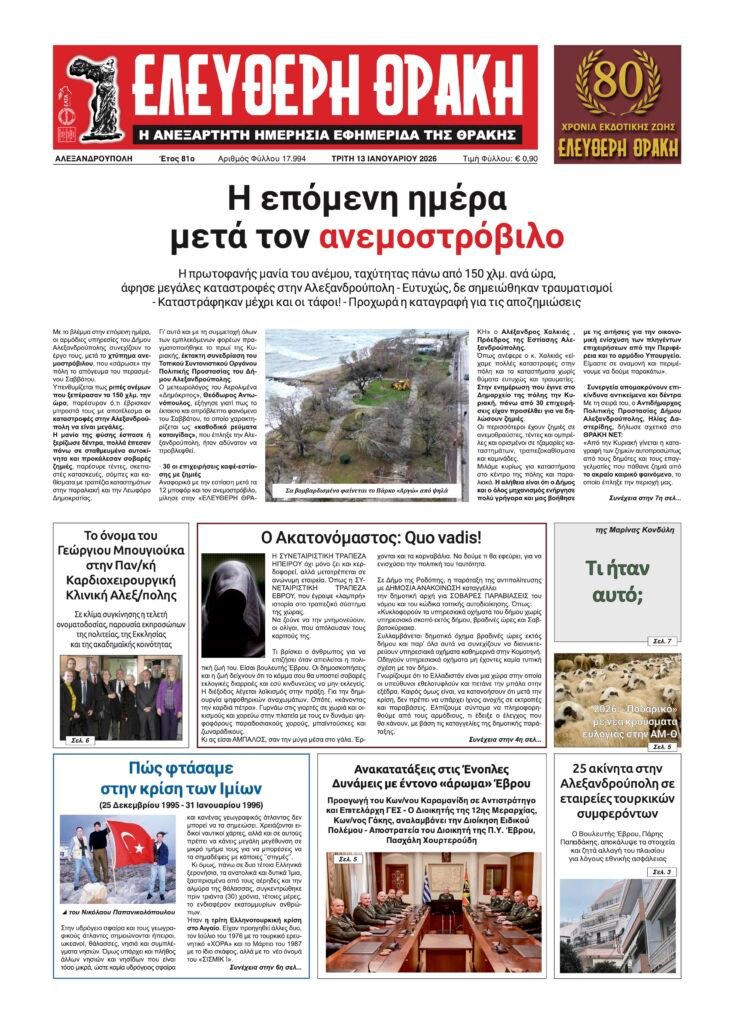 Τρίτη 13 Ιανουαρίου 2026
