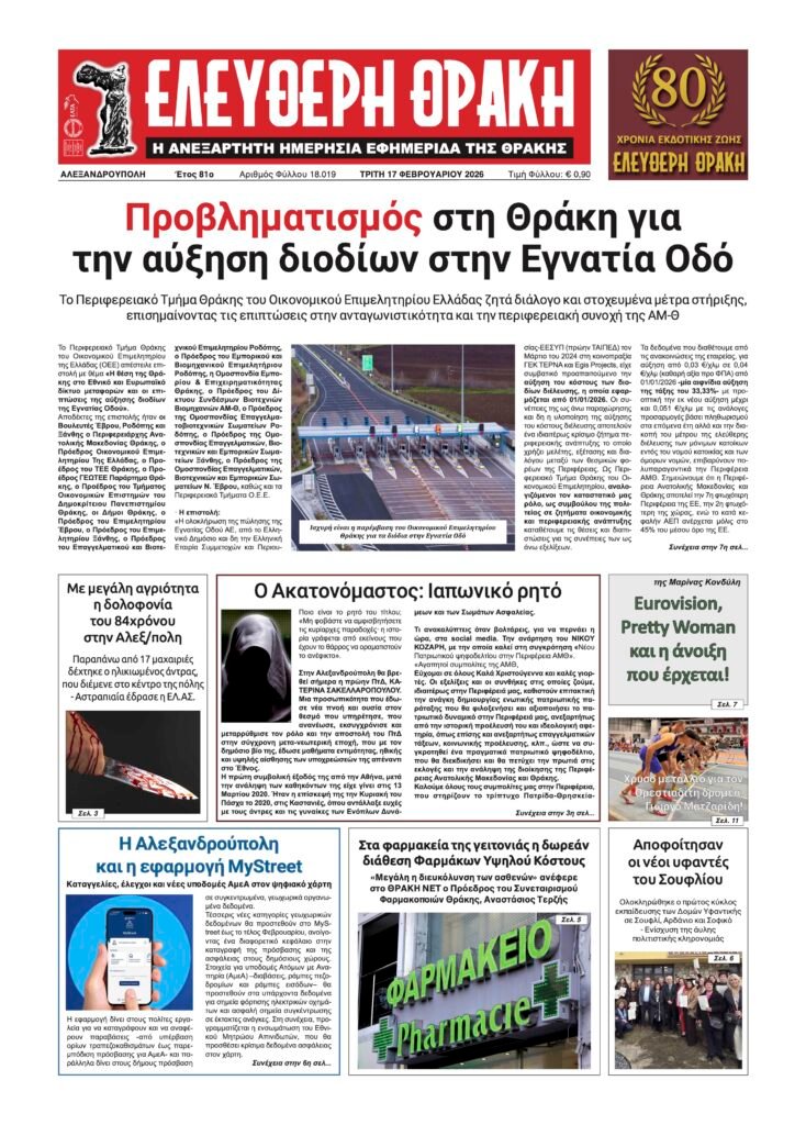 Τρίτη 17 Φεβρουαρίου 2026