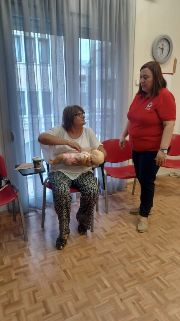 Η εκπαίδευση αφορούσε τις βασικές αρχές των πρώτων βοηθειών σε περιπτώσεις τραύματος, αιμορραγίας/ρινορραγίας, εγκαύματος, επιληψίας και πνιγμονής.
