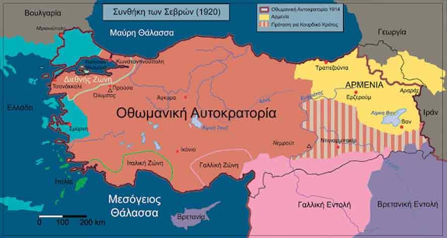 Η Συνθήκη των Σεβρών αποσκοπούσε ειδικά στη δημιουργία ενός αυτόνομου Κουρδιστάν. Η συνθήκη επέβαλε την αποστρατικοποίηση των Στενών από την Οθωμανική Αυτοκρατορία, αλλά η Συνθήκη αυτή δεν εφαρμόστηκε ποτέ.